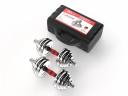 Набор состоит из двух гантелей общим весом 50 кг. Удобная разборная конструкция позволяет регулировать вес гантелей в процессе занятий.