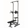 Многофункциональный тренажер с встроенным весовым стеком. Позволяет выполнять комплекс упражнений на различные группы мышц. Дополнительно тренажер имеет брусья для отжимания и скамью для пресса с гантелями по 1,5 кг с регулировкой по углу наклона.