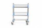 Стол манипуляционный с тремя полочками, сделанный целиком из белого пластика*, с трёхсторонними боковыми ограждениями на полках